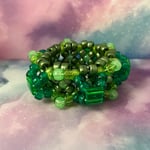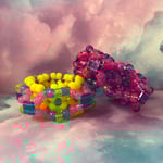 Pony beads and stretch cord. Pony beads pose a choking hazard to small children. Please use parental discretion if considering for a child.