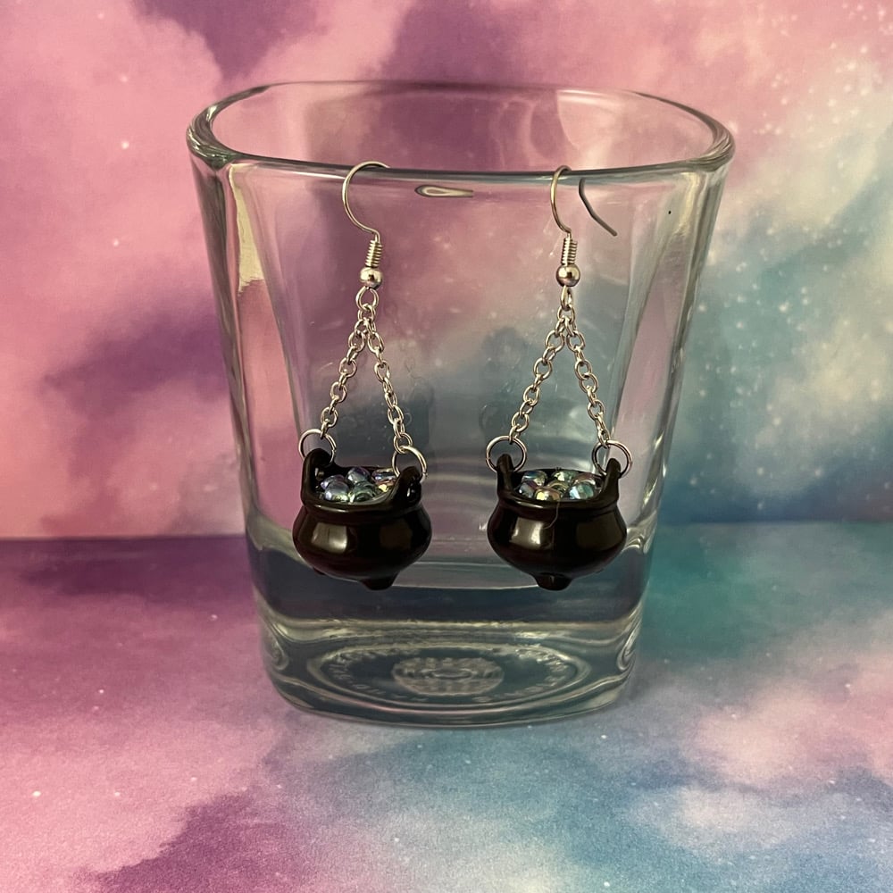 Stand out in any crowd with these beautiful, hand-filled bubbling cauldron earrings!