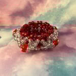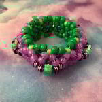 Pony beads and stretch cord. Pony beads pose a choking hazard to small children. Please use parental discretion if considering for a child.