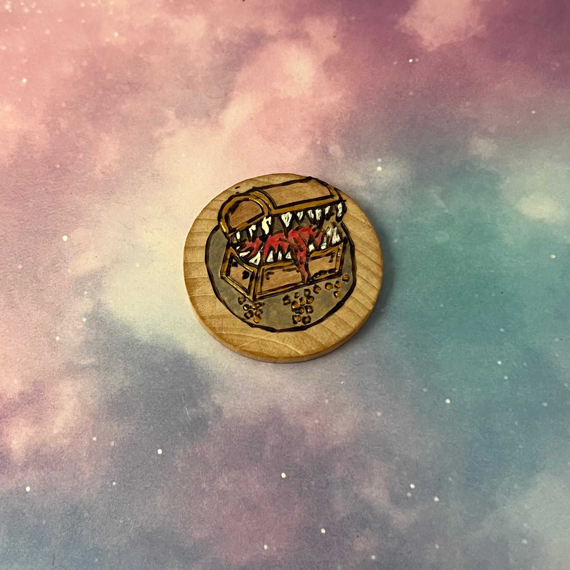 NOTE: design may vary slightly from picture as each coin is wood burned and stained by hand! Meaning there will be some slight variance in each coin.